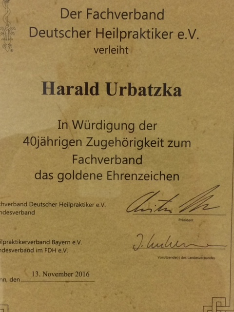 Naturheilpraxis Harald Urbatzka, Mitglied Nr. 6822 im Fachverband Deutscher Heilpraktiker e.V., zugelassen für alle Privatkassen und Beihilfe